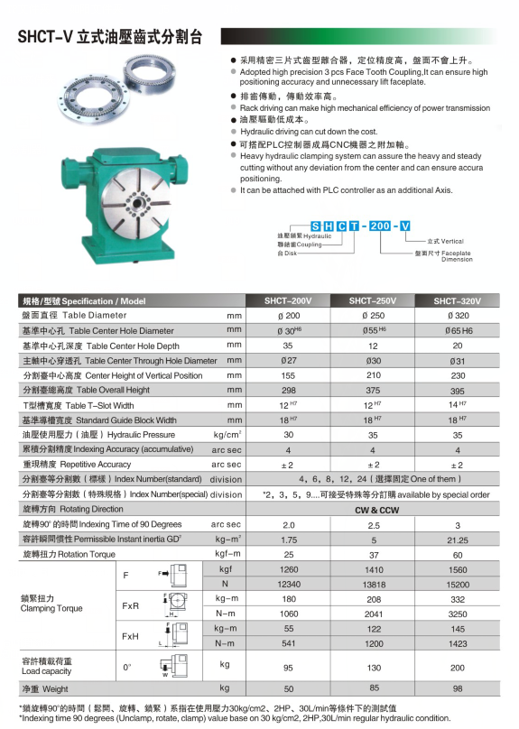 SHCT-V立式油壓齒式分割臺(tái)